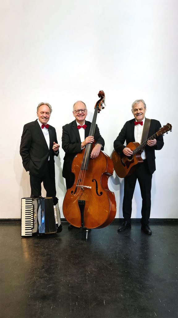 Mit Akkordeon, Gitarre & Bass sowie unseren ausgewogenen Stimmen zaubern wir Ihnen ein buntes Programm für Ihr Firmenevent, Ihre Hochzeit, Ihren Geburtstag. Musik vom Feinsten: Internationale Unterhaltungsmusik, Jazz-Klassiker, Swing-Hits, Wiener Salonmusik, Musicals, Volksmusik bin hin zum klassischen Tango.